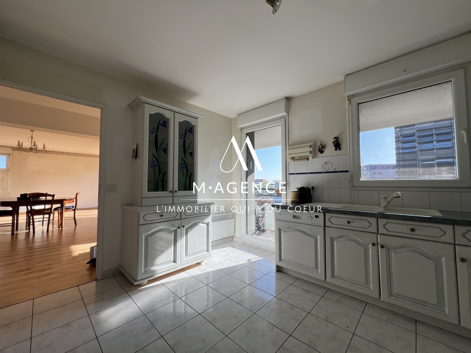 En entrant, vous trouverez d'abord une grande entrée, un cellier / buanderie, un grand séjour de près de 50m² exposé Sud-Est donnant accès à un vaste balcon de 20,49m², accessible également depuis la cuisine. Cette dernière, d'une superficie de 15m², pourra être ouverte afin de créer une grande pièce de vie, avec ilôt central par exemple.