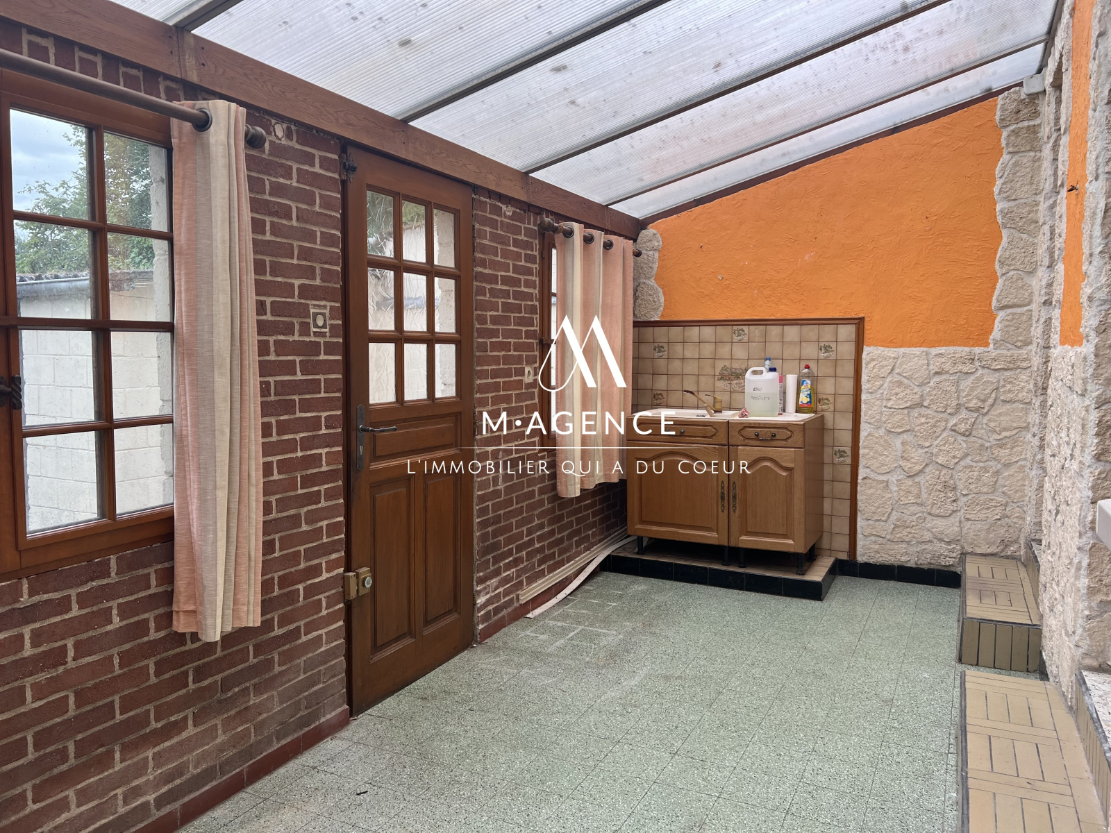 Le rez-de-chaussée dispose également d'un espace type véranda, ainsi que d'une cave saine permettant de stocker.