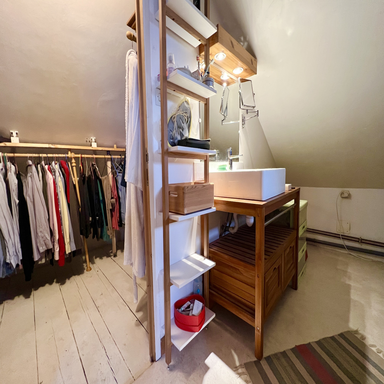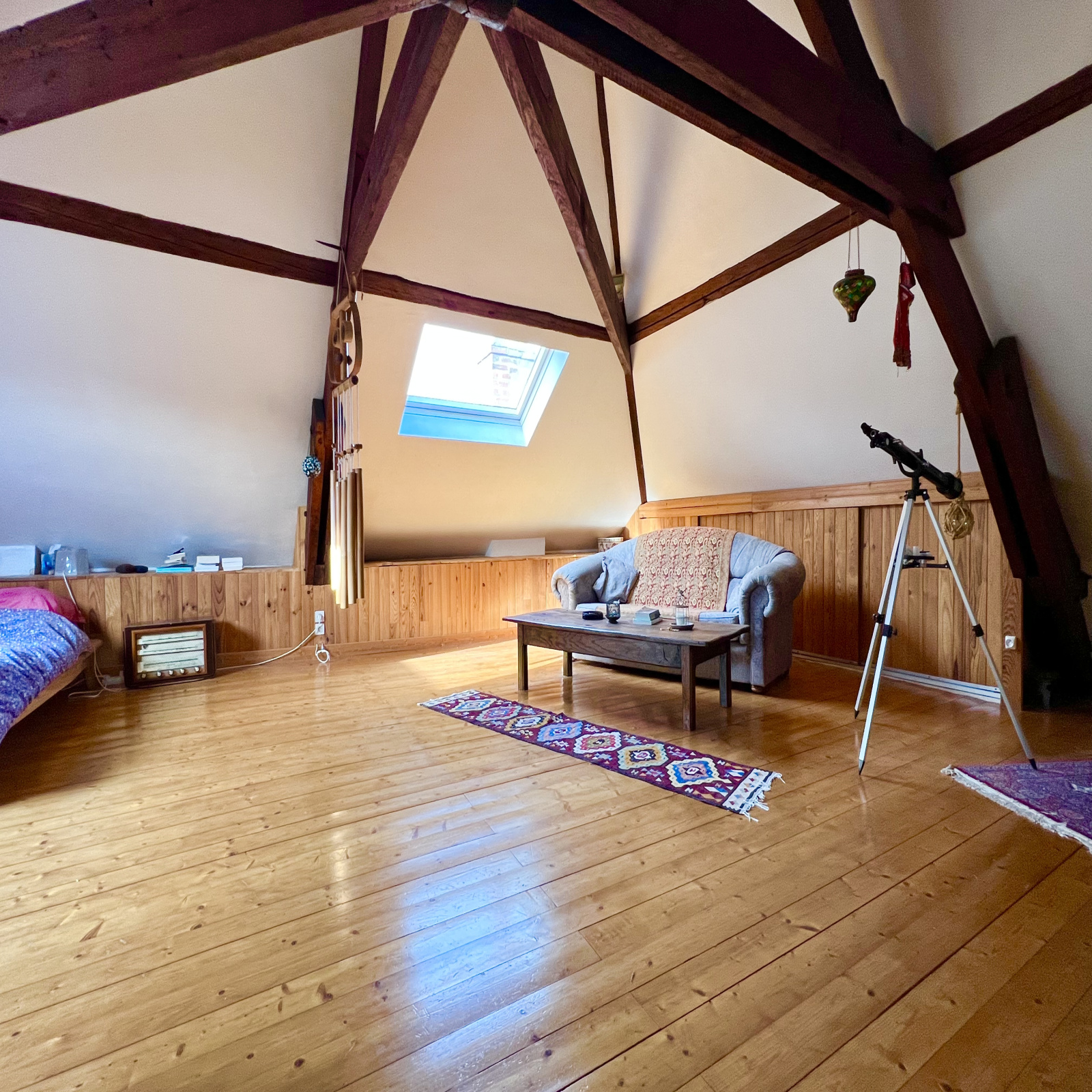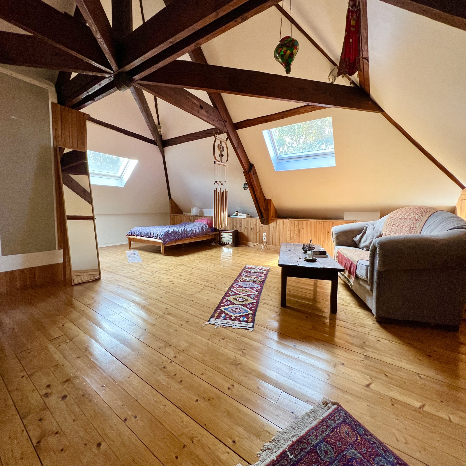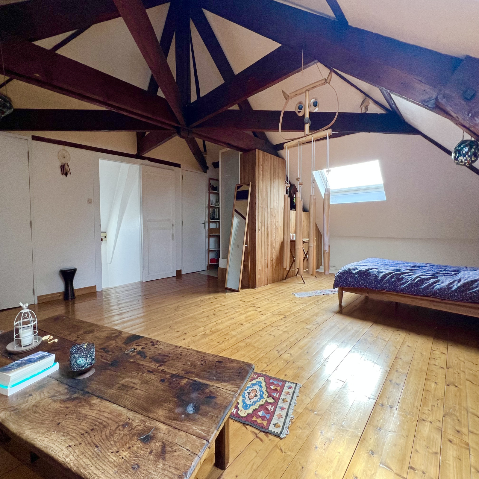 En surface habitable. Charpente apparente. Double dressing et douche-vasque