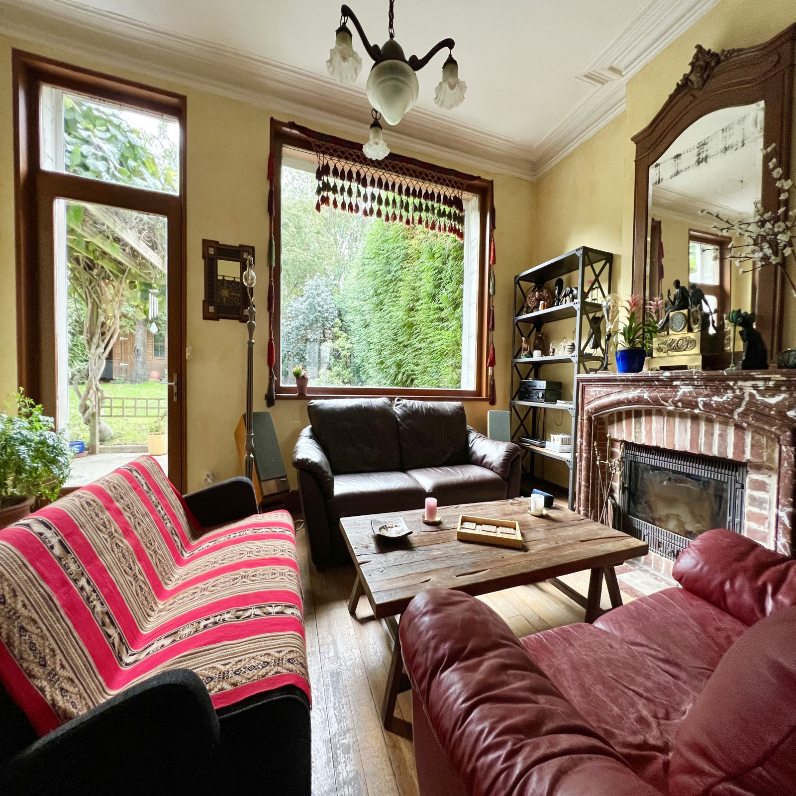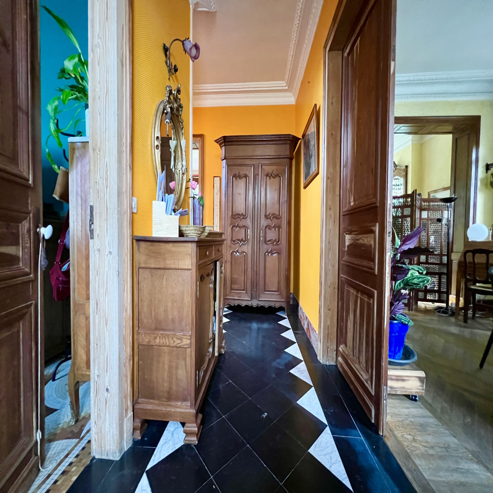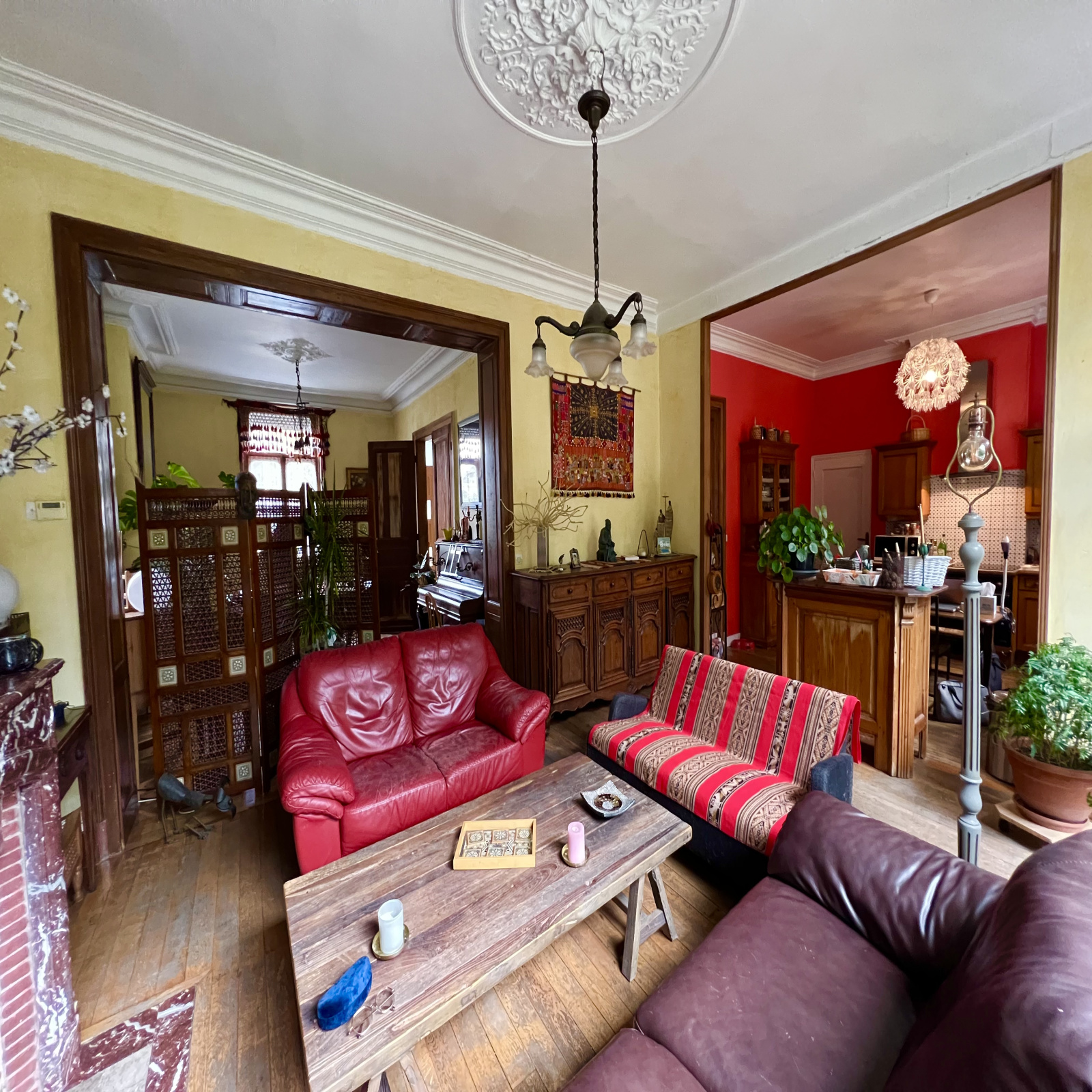Salon salle à manger - cheminées marbres avec foyer fermé insert bois - moulures d'origine - plancher d'origine bois massif