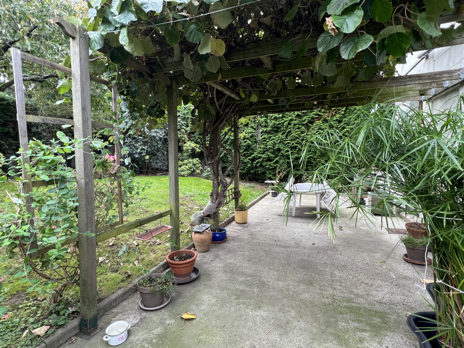 Sans vis à vis. Jardin clos et arboré. Exposition sud est. Terrasse de 43m² avec pergola et cabanon.