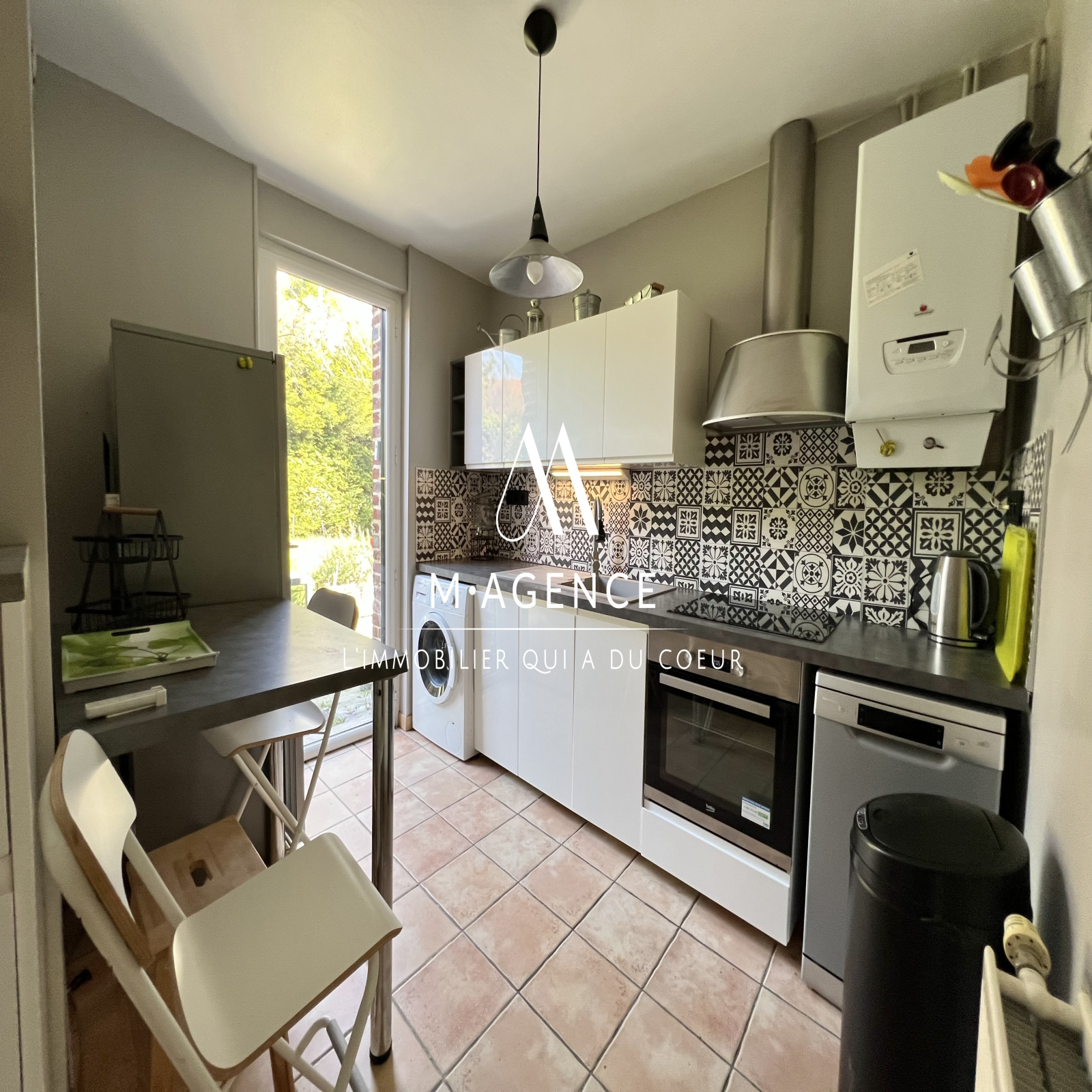 - une cuisine semi-équipée de 2019, avec porte fenêtre donnant sur la terrasse