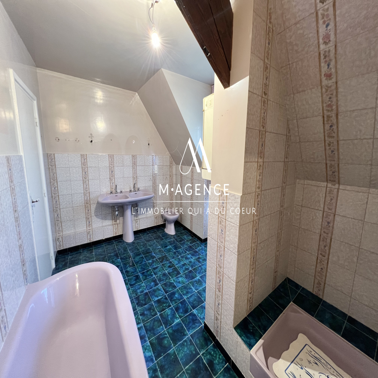 - une salle de bain de 15m² avec baignoire et douche