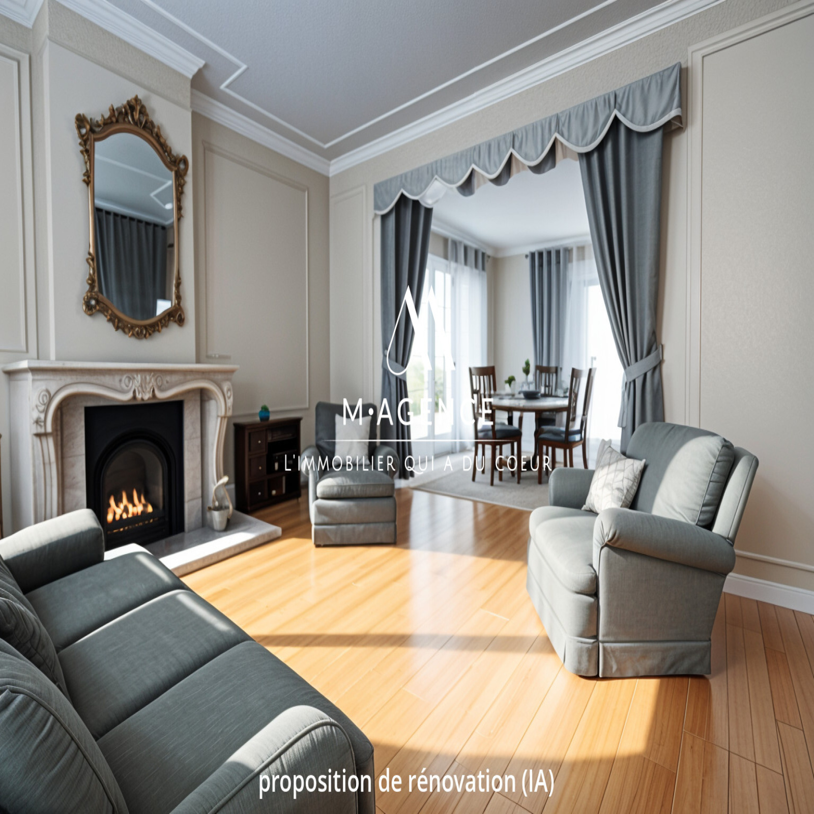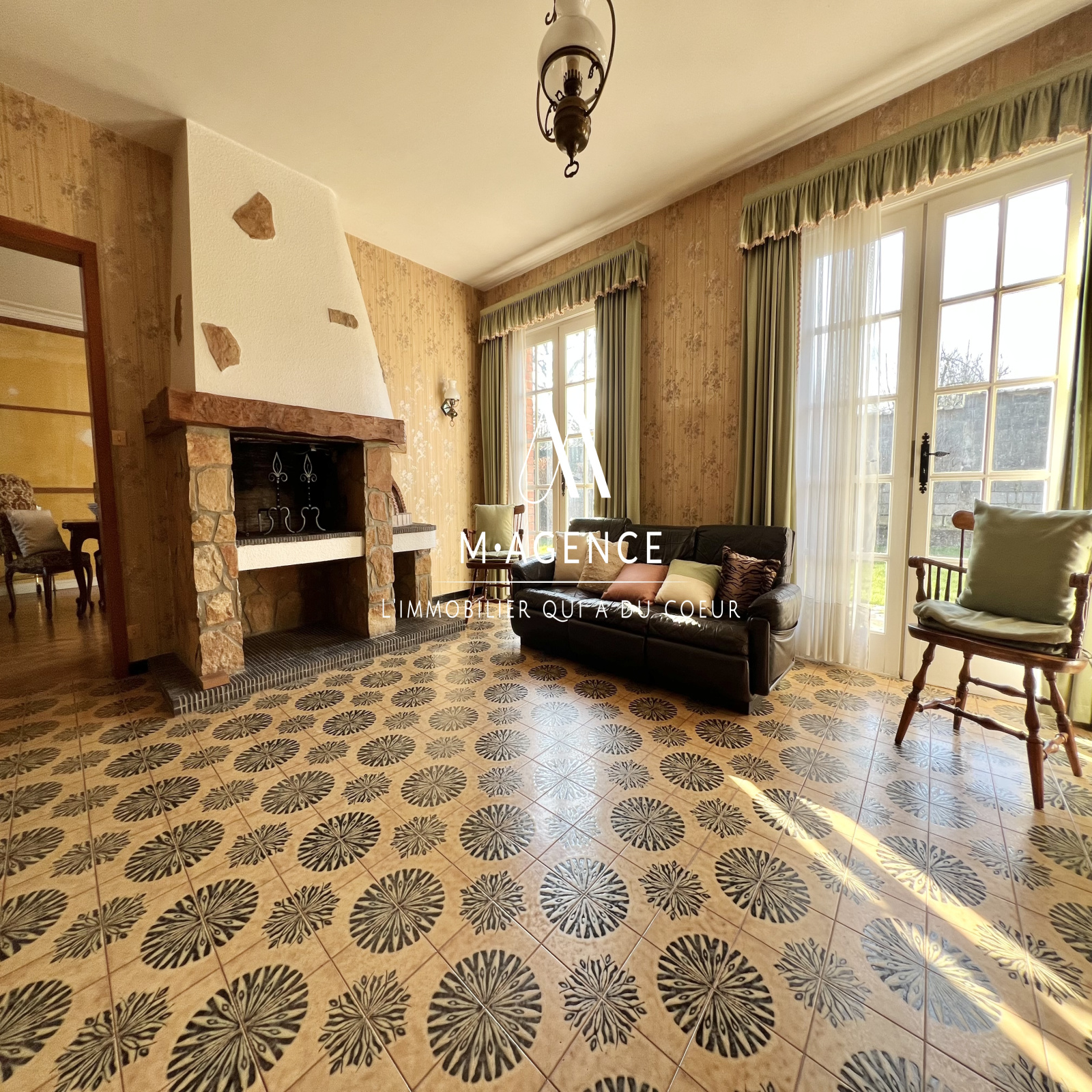 - un salon / salle-à-manger de 41m² lumineux car traversant, avec cheminée foyer ouvert