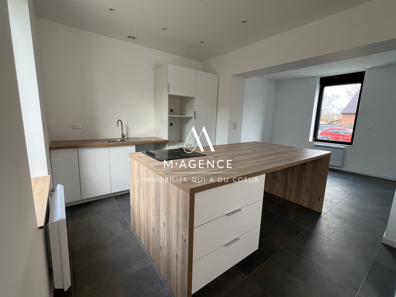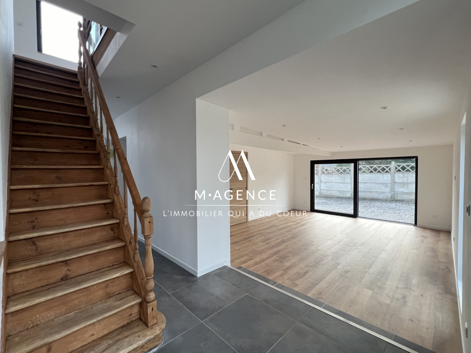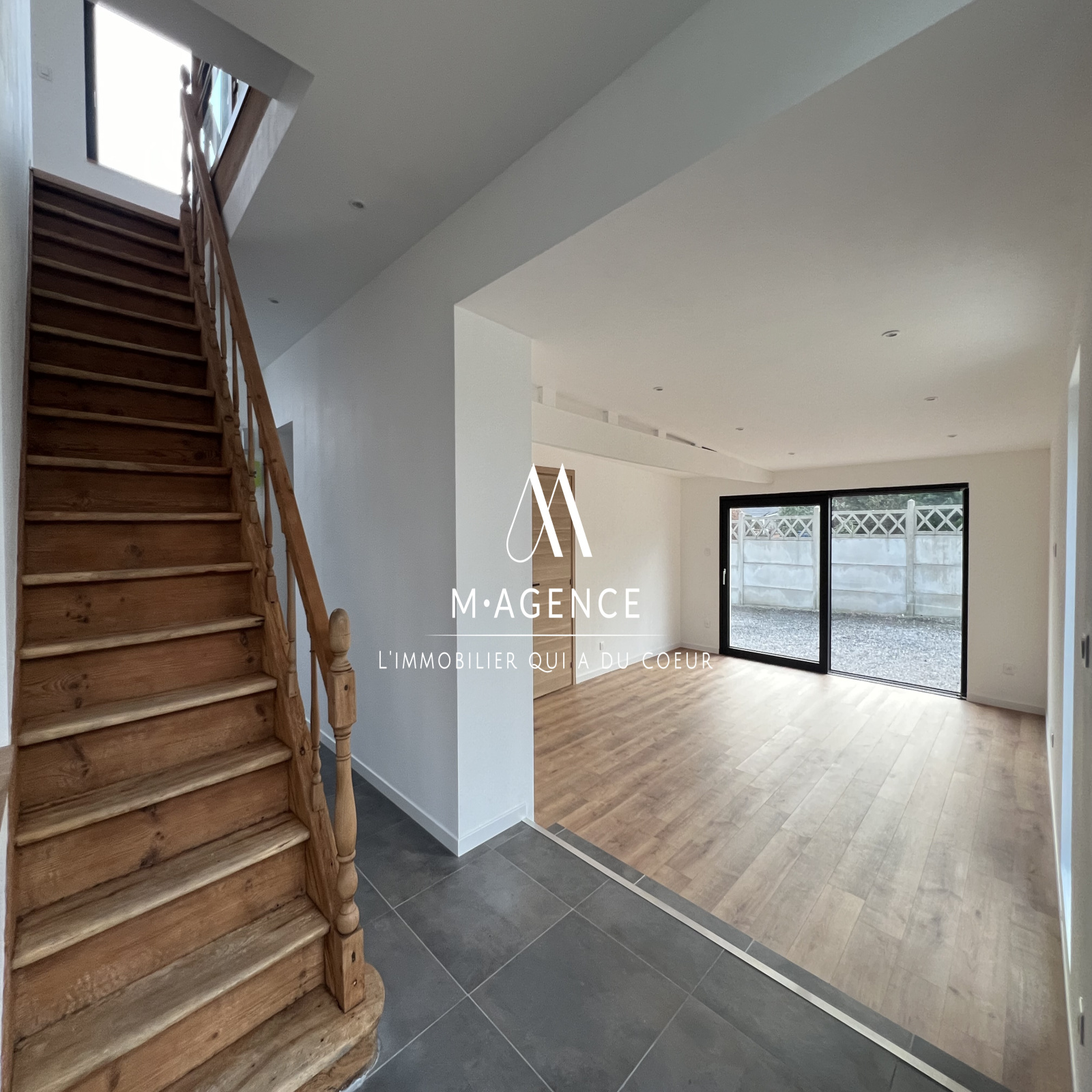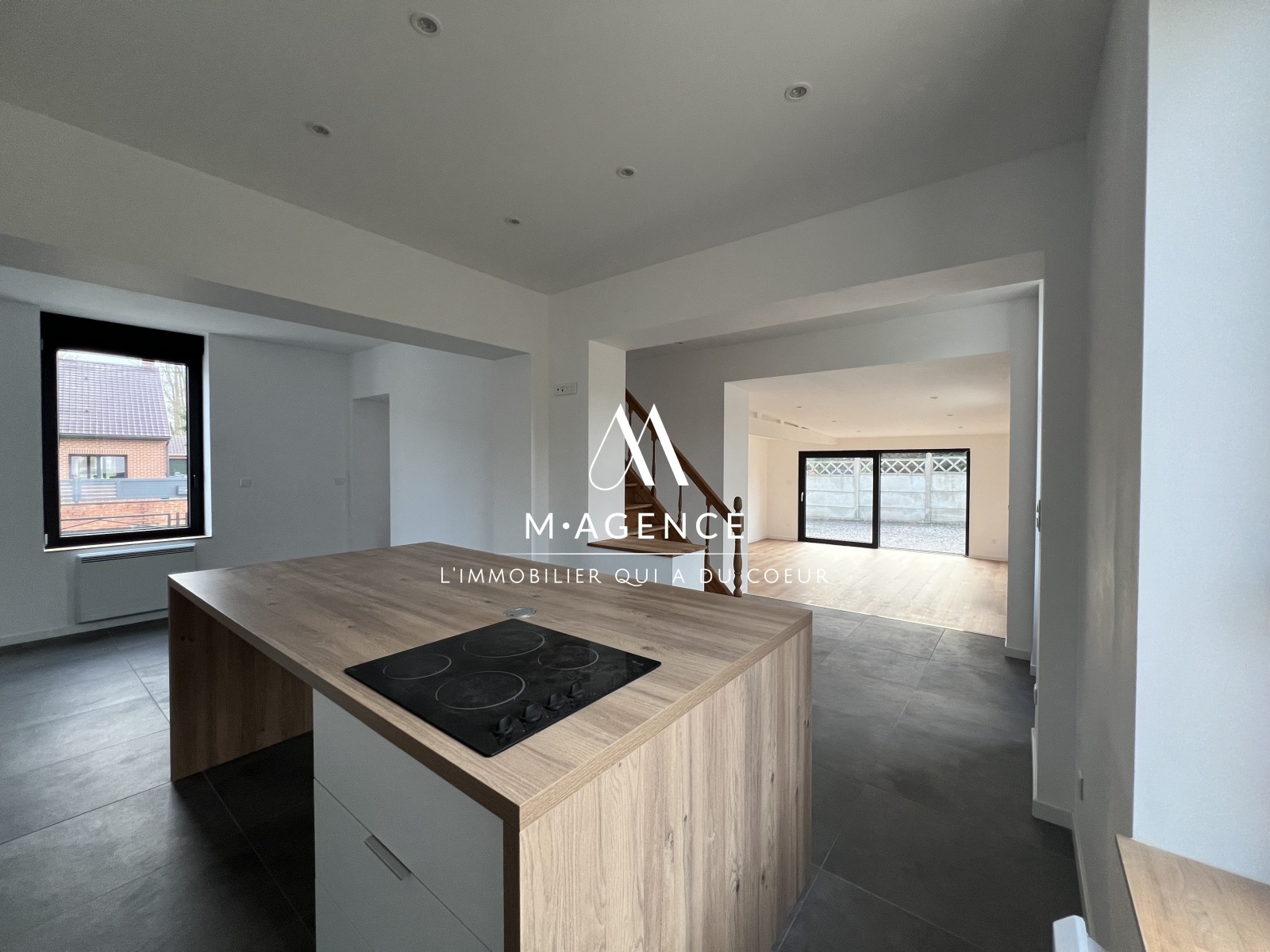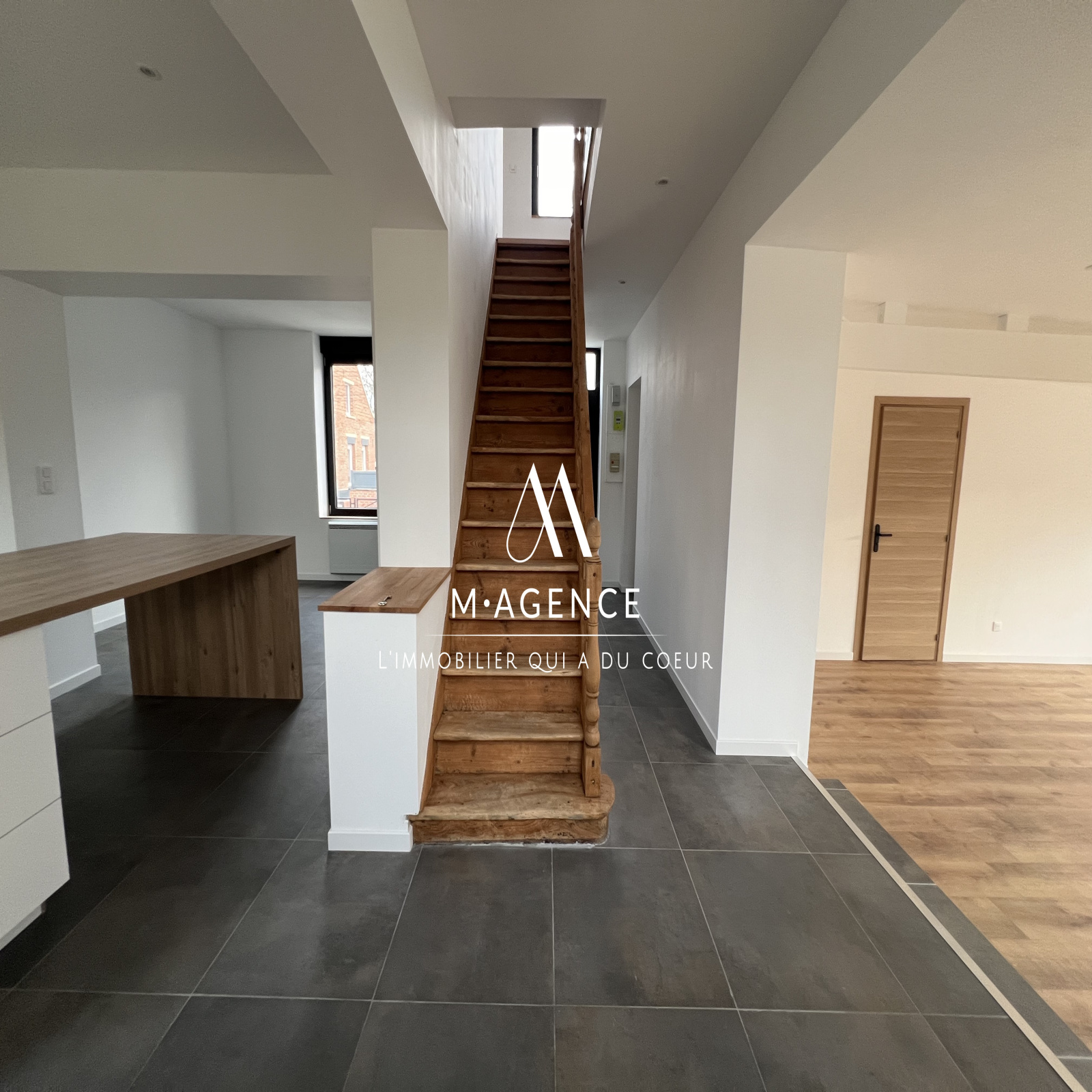 M · AGENCE, par Martin & Mathilde, vous présente, dans le village prisé de LECELLES cette maison de 110m² entièrement rénovée, semi-individuelle avec allée de stationnement et garage, comprenant 3 chambres.