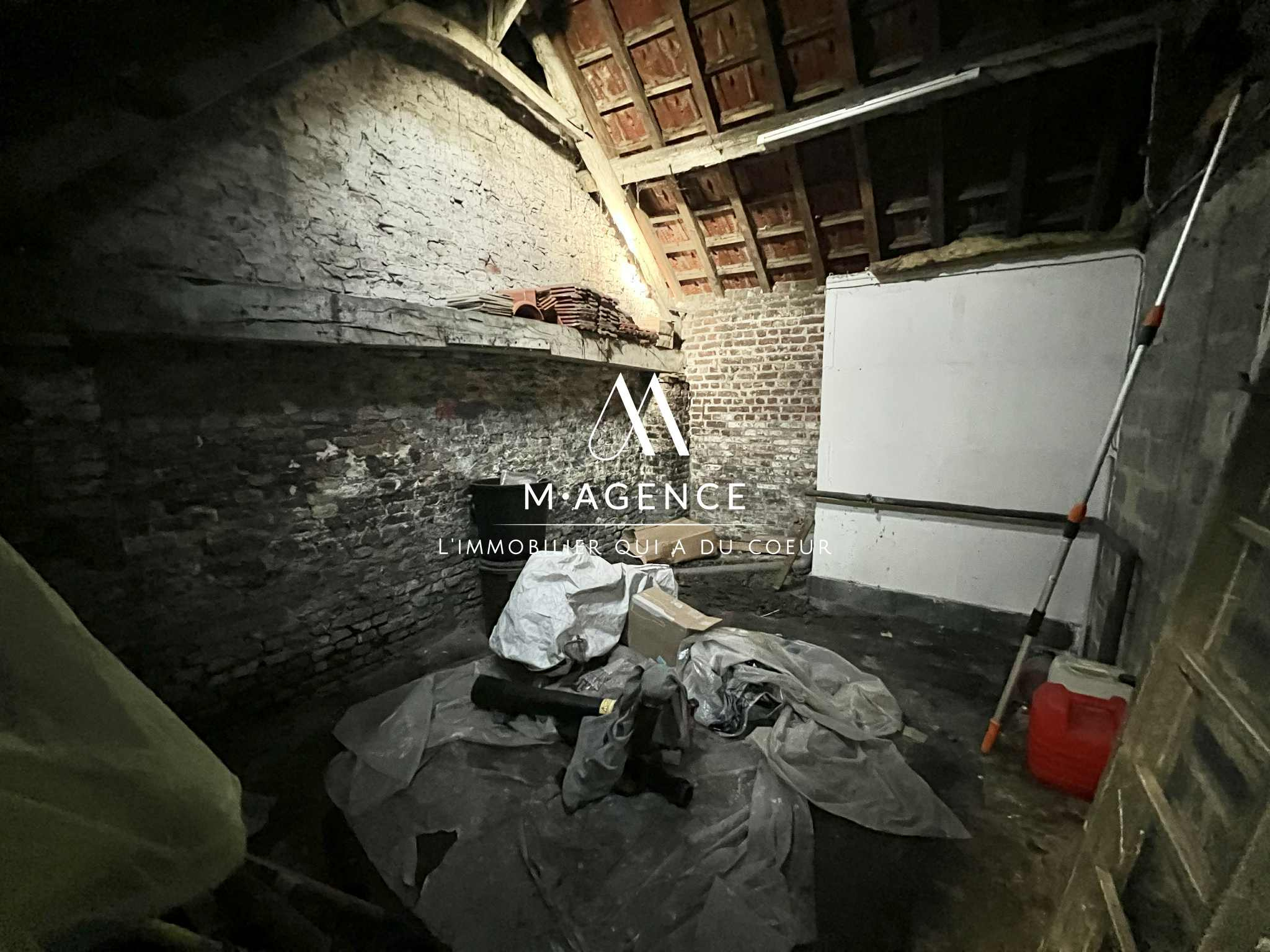 M · AGENCE, par Martin & Mathilde, vous présente, sur la commune d'Hasnon, cette ancienne fermette semi-individuelle, à rénover entièrement avec double garage et espace de stockage, idéal pour cumuler vie de famille et activité professionnelle.
